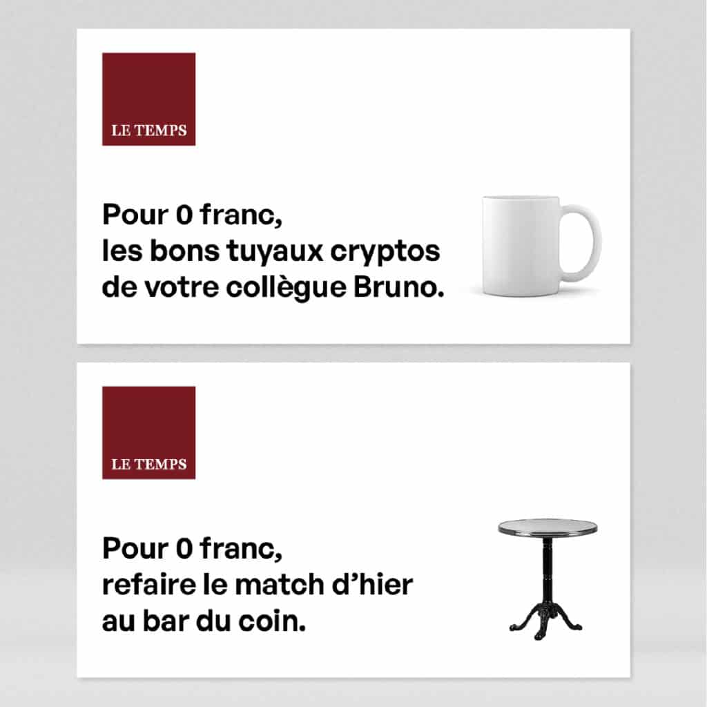 Utiliser l’offre à CHF 1.–/mois non comme une simple promotion, mais comme un rappel de la valeur intrinsèque du journal : profondeur, analyse, éclairage. Mettre en contraste la richesse du travail journalistique avec tout ce qui est gratuit… et souvent sans réelle valeur.